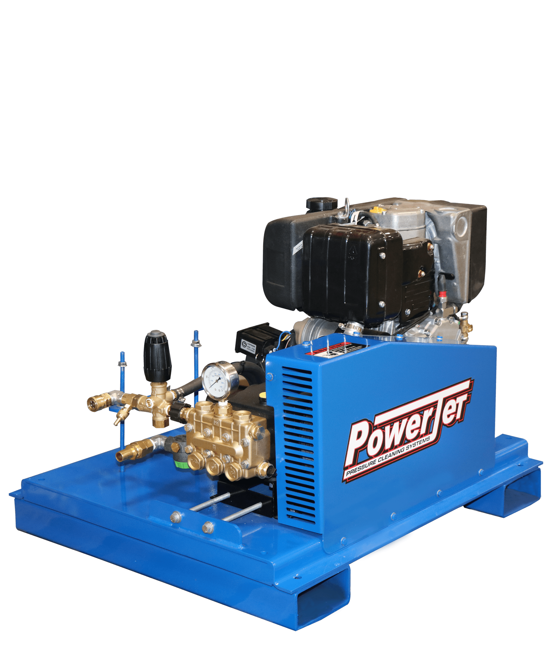 These industrial cold water gas and diesel pressure systems were designed and built for heavy industrial cleaning on a daily basis. The 1-1/2” square steel roll cage frame houses and protects the top of the line components when transporting this unit from one job site to the next. This unit is extremely serviceable, all components are easily accessible.